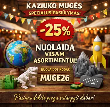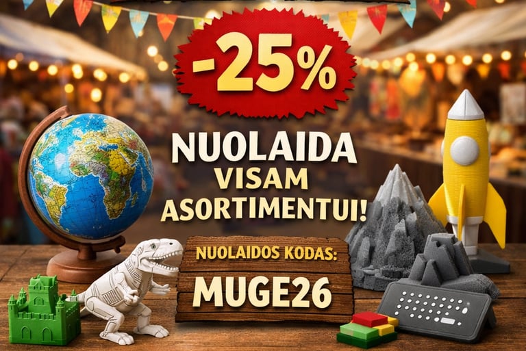 Ypatinga nuolaida visiems mūsų 3D spausdintiems gaminiams bei individualiems užsakymams